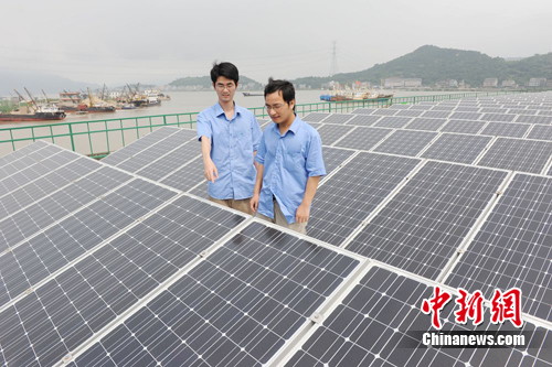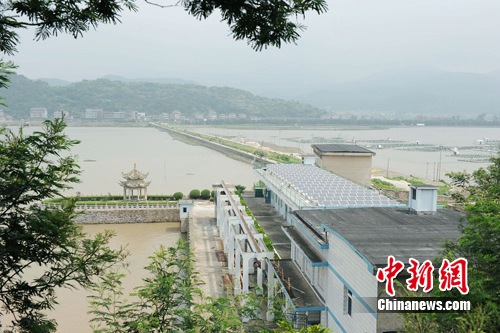 中新網(wǎng)臺州7月14日電(記者 柴燕菲 實習生 倪幼杰 通訊員 金宗炳 趙雨棽)日前,位居世界第三的浙江溫嶺江廈潮汐試驗電站建成了我國首座建在潮汐電站廠房樓頂?shù)奶柲苁痉峨娬,該太陽能電站利用廠房樓頂和車棚空間,總裝機容量為40千瓦、預(yù)計年發(fā)電45000度(千瓦時)。據(jù)專家介紹,該電站的建成,可節(jié)約標準煤18噸,年減排二氧化碳46噸、減排碳粉塵12噸、減排二氧化硫2噸,真正成為潮汐能、太陽能并用的無污染清潔能源電站。(完)