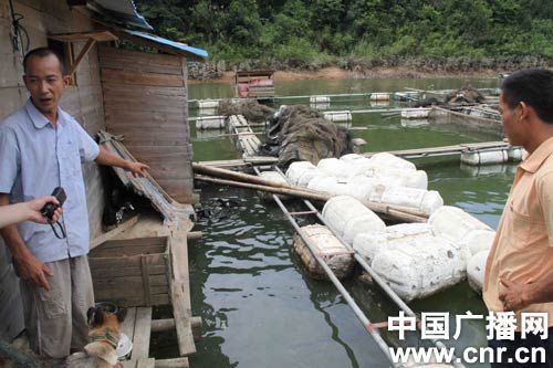 漁民丘永祿:18日開始浮頭,整個(gè)網(wǎng)箱的魚全都浮起來了,很恐怖,拼命撞(漁網(wǎng)),不吃料,我們嚇壞了。19日開始有魚死了,20日大批量,21日是真正大批量,23日一條魚看不見,我們拉網(wǎng)魚全部沉在底下。