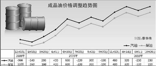 自2008年12月19日至2010年10月26日的成品油價格變化。負值為下調價格,正值為上調價格。