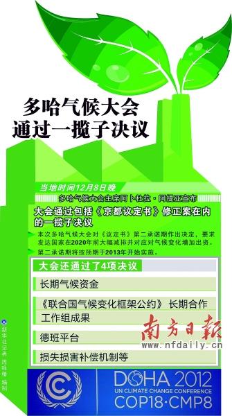經過一天一夜的“加時”鏖戰(zhàn),多哈氣候大會終于在當?shù)貢r間8日晚上通過一攬子決議,戲劇般地落下帷幕。會議決定從2013年開啟《京都議定書》第二承諾期,為期8年。此外,會議還決定到2015年時達成一個涉及所有國家的有關2020年后全球應對氣候變化行動的協(xié)議,并重申發(fā)達國家應當為發(fā)展中國家應對氣候變化提供資金支持。