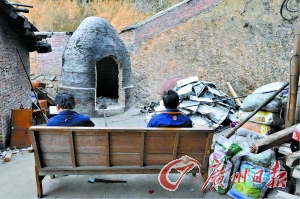 在靠山腳下的一排爐子前面,一個(gè)年輕小伙正在焚燒用黑塑料袋裝著的東西?吹接浾呱锨埃晃徊儆谢浳骺谝、年齡在40歲上下的老板模樣的人湊上前來(lái)。“你這是煉金嗎?”“不是煉金,搞點(diǎn)電鍍廠的廢水!庇浾呖吹接幸粋(gè)盛有金黃色液體的玻璃器皿放在一個(gè)鐵盆上。在雨棚一側(cè),還堆有幾十個(gè)藍(lán)、黑色的塑料桶,桶口均用塑料袋堵住后,再用蓋子蓋上的。