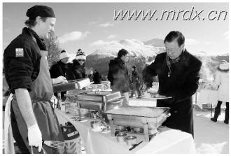 午餐時分,與會代表們紛紛裹緊外套,穿上大衣,離開暖氣燒得火熱的餐廳,來一頓戶外露天午餐。幕天席地與自然環(huán)境親密接觸,不失為親身體驗氣候變化的好方法。但愿面對冰天雪地飽餐的同時,代表們能思考出應(yīng)對氣候變化的更好辦法。