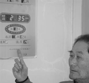 昨日下午,記者來到居民寧大爺家,南屋點(diǎn)著電暖器,溫度計(jì)上顯示的溫度只有零上14度,記者摸了一下暖氣,冰涼。