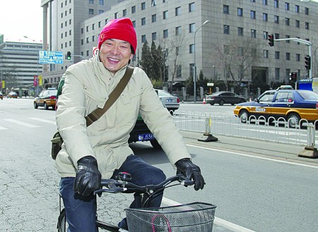 看記者正在拍照,讓他配合一下,他咧嘴笑了,然后騎上車離開了。離開前,記者說(shuō),您出行很環(huán)保!他開玩笑說(shuō),就算低碳一次吧。(記者 郭靜)