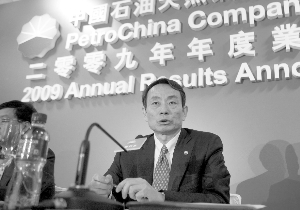 年報顯示,截至2009年12月31日,在原油價格同比下降38.4%的情況下,中國石油實現(xiàn)營業(yè)額1.02萬億元,凈利潤1031.7億元,每股收益0.56元,同比下降9.4%。根據(jù)董事會決議,公司將派發(fā)末期股息每股0.13元。