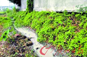 記者沿著發(fā)臭的小溪渠尋找污染源,發(fā)現(xiàn)田園間幾條水溝里的水都是前面工廠排出的污水,并且還散發(fā)著刺鼻的臭味,水呈奶白色(見(jiàn)圖)。