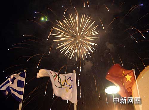 中新社塞薩洛尼基三月二十七日電 (記者 王歡)天籟般的童聲合唱、悠揚的民族歌舞、絢麗的喜慶禮花,北京二00八年奧運會圣火希臘境內(nèi)第四日傳遞,在第二大城市塞薩洛尼基的亞里士多德廣場落幕。