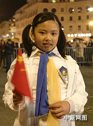 亞里士多德廣場的慶典儀式上人潮涌動,上千市民匯聚于此親眼目睹北京奧運圣火的到來。截至目前,塞薩洛尼基的慶典在舞臺規(guī)模和參與人數(shù)上都堪稱圣火傳遞之最。近百人的童聲合唱團由一位華人小姑娘、十歲的王佩珺領銜,為觀眾帶來了純潔、恬靜的美妙感受。漫天的禮花在空中綻開,將整個城市籠罩在節(jié)日的喜慶氣氛中。