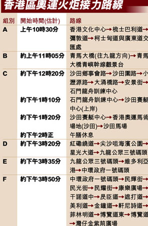 圖:香港區(qū)奧運火炬接力路線。(圖片來源:文匯報)