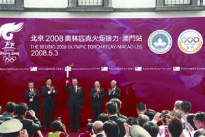 何厚鏵致詞時代表澳門特別行政區(qū),對中央人民政府、國際奧委會和北京奧組委提供難得機會,使澳門成為奧林匹克火炬?zhèn)鬟f“和諧之旅”的其中一站,表示衷心感謝。