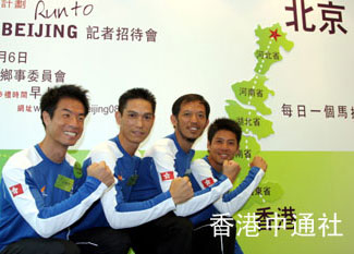 中新網(wǎng)5月6日電 據(jù)香港中通社報(bào)道,為了挑戰(zhàn)自我極限,香港三位長跑精英和一位區(qū)議員,把握著中國首次舉辦奧運(yùn)這個(gè)極具意義的機(jī)遇,決心以他們無比的意志,計(jì)劃花2個(gè)月時(shí)間,從香港跑馬拉松到北京,與祖國的同胞一同迎接奧運(yùn)。