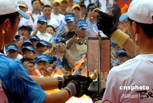 圖:奧運(yùn)圣火在中國革命圣地井岡山燃燒