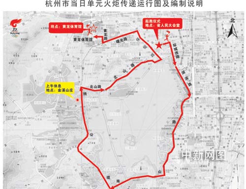 據(jù)悉,杭州段的火炬接力傳遞活動(dòng)于五月十八日上午八點(diǎn)整將在浙江省人民大會(huì)堂東門(mén)外廣場(chǎng)舉行起跑儀式,主要環(huán)繞杭州西湖進(jìn)行傳遞,同時(shí)還將經(jīng)過(guò)雷鋒夕照、柳浪聞鶯、湖濱路名品街、西湖博覽會(huì)博物館等杭州的地標(biāo)建筑和著名景點(diǎn),最后將于十一點(diǎn)半在杭州黃龍?bào)w育館舉行奧運(yùn)火炬接力杭州站結(jié)束儀式,全程預(yù)計(jì)歷時(shí)三小時(shí)四十五分鐘,被定名為“和諧之旅——生活品質(zhì)之路”!