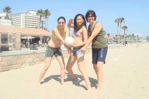 郎平和女兒、外甥女在沙灘打排球。圖片來(lái)自郎平博客