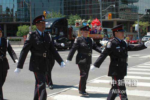 龍舟節(jié)花車巡游在中國傳統(tǒng)的舞龍帶領(lǐng)下,從多倫多市區(qū)出發(fā),由多倫多警察開道護(hù)航,穿過多倫多士巴丹那大道、唐人街、學(xué)院路、大學(xué)街等主要繁華街道,經(jīng)過多倫多大學(xué)、安大略省議會(huì)大廈、政府大樓,最后抵達(dá)女王公園,行程近5公里。北京奧運(yùn)主題的花車巡游給多倫多市民們帶來了一份特別的驚喜和祝福。奧運(yùn)福娃和龍舟所經(jīng)之處,受到街道兩旁多倫多市民的熱烈歡迎,大家紛紛與之合影留念,并向游行隊(duì)伍歡呼致意。