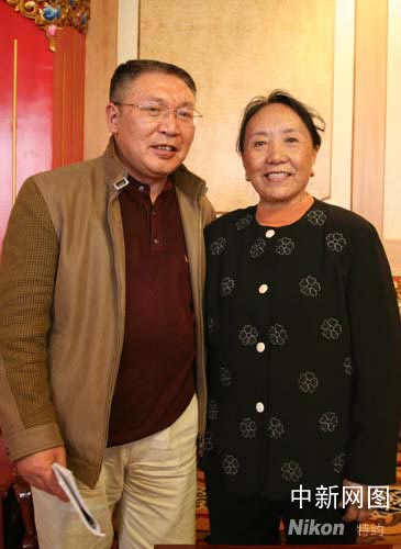 第一代著名藏族歌唱家才旦卓瑪日前接受中新社記者采訪時(shí)表示希望藏族青年一代珍惜來之不易的美好生活及大好形勢(shì)。圖為才旦卓瑪與記者合影。 賈長(zhǎng)飛 攝影