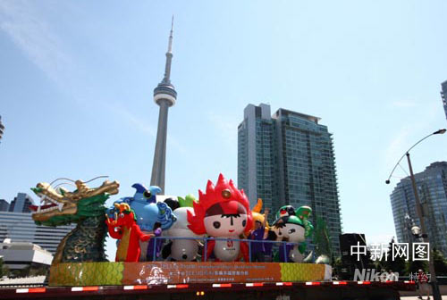 中新網(wǎng)多倫多6月21日電 今天,北京奧運吉祥物“五福娃”參加了在多倫多中央島舉行的第20屆多倫多國際龍舟節(jié)開幕典禮,加拿大三大政黨要員、5000名各國龍舟健兒以及超過10萬名觀眾感受到了北京奧運的熱情與祝福。