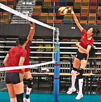 圖:趙蕊蕊在進(jìn)行扣球練習(xí)。(圖片來(lái)源:文匯報(bào))