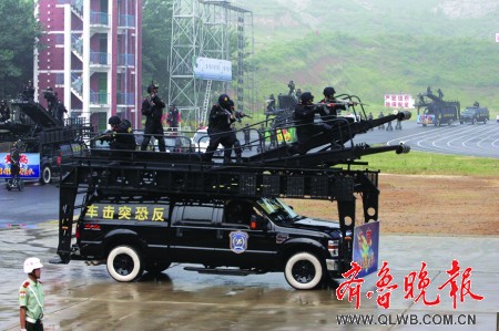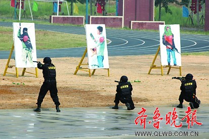 山東武警舉行奧運(yùn)安保反恐新裝備匯報(bào)演示(圖)