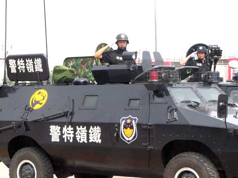 出警儀式上,遼寧省公安廳、沈陽軍區(qū)、遼寧省武警總隊等單位進行了力量集結(jié)拉動展示。1326名隊員齊聲高呼著口號,迅速開始登車。寬闊的跑道上警燈閃爍,精神飽滿的公安特警方隊,整齊威武的武警持槍方隊,軍容嚴整的人民解放軍方隊以及由特種裝備車、輕型裝甲車、運兵車、照明車、防化車、特種偵察車、炊事車、特戰(zhàn)車、防彈車、突擊沖鋒車、水炮車、宿營運兵車、裝甲運兵車、防核生化車等119臺車輛組成的共26支方隊依次通過主席臺,經(jīng)過市區(qū)主要街路,駛往沈陽奧體中心。
