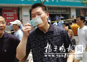 昨天上午10點半,在靠近華夏銀行大門口的隊伍外圍,一位老大媽手里拿著剛剛出版的揚子晚報等報紙,向記者和過路行人訴苦起來。原來,她前天早早來到華夏銀行排隊,后來排隊人多了,排在隊伍前面的人自發(fā)地手寫序號穩(wěn)定隊伍,她成了“第7號”,到夜里,她和排隊的人還接受了本報等各家報社記者的采訪。大媽說到這里揚了揚手中報紙:“你們看看,報上登的照片里還有我。我就排在第7個。后來排隊人越來越多,我熱得吃不消,就和排在隊伍前后的人打個招呼,回家洗了把澡,結(jié)果回來時,聽說原先的隊伍被人趁亂重排座次了,我的第7號就沒人認(rèn)賬了!