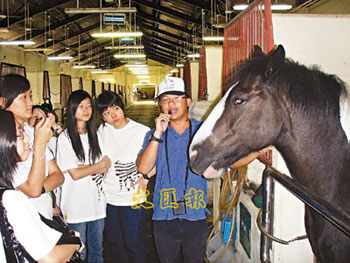 在參觀馬房時(shí),30多名中學(xué)生都好奇地東張西望,大部分都是第一次跟馬匹如此近距離地親密接觸,女生都忍不住鼓起勇氣摸摸馬頭馬頸,“它好溫馴!”張琪琪一邊撫摸馬匹,一邊開心地說。