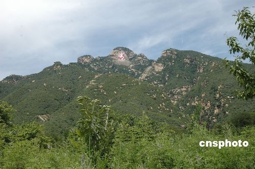 7月13日,高96米、寬38米的大型摩崖石刻“中國印”在北京密云縣云蒙山云龍澗主峰落成揭幕。中新社發(fā) 賴海隆 攝