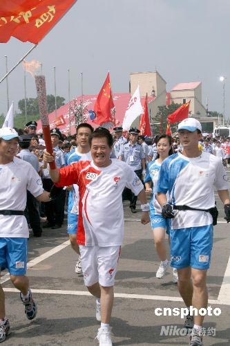 7月17日,北京奧運火炬在沈陽傳遞,中國最具知名度的笑星、“小品王”趙本山擔任火炬手傳遞奧運圣火。  中新社發(fā) 周兆軍 攝