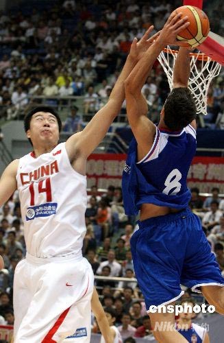 圖:中國(guó)隊(duì)勝塞爾維亞隊(duì) 王郅治得分冠全場(chǎng)