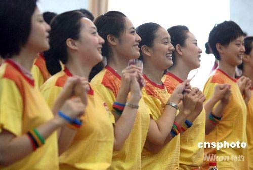七月十八日,中國(guó)國(guó)際航空客艙服務(wù)部正式成北京奧運(yùn)會(huì)、殘奧會(huì)文明觀眾拉拉隊(duì)。屆時(shí)這支由客艙服務(wù)員組成的拉拉隊(duì)必將成為一道靚麗的風(fēng)景線。 中新社發(fā) 任海霞 攝