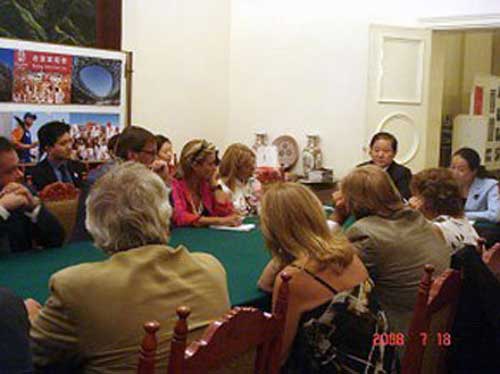 意大利媒體記者對(duì)孫玉璽大使在他們赴京采訪奧運(yùn)前邀請(qǐng)大家出席北京奧運(yùn)會(huì)倒計(jì)時(shí)20天的慶;顒(dòng)表示感謝,祝愿北京奧運(yùn)取得圓滿成功,并表示將努力投入奧運(yùn)報(bào)道工作,增進(jìn)意民眾對(duì)北京奧運(yùn)和今日中國(guó)的了解。(博源)