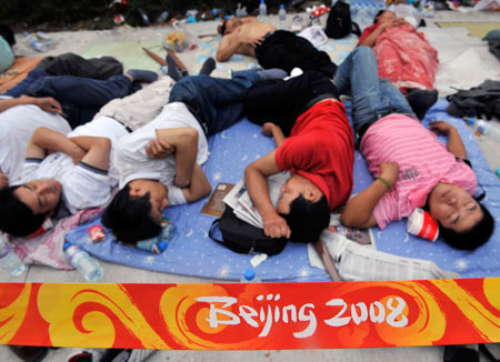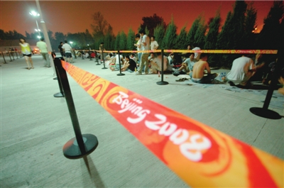 從昨天下午1點(diǎn)開始,已有人趕到朝陽區(qū)北土城東路奧體中心售票處等待購買25日才開售的最后一批奧運(yùn)門票。至昨晚11點(diǎn),已有300余人趕到排隊(duì),且隊(duì)伍仍在不斷擴(kuò)大。