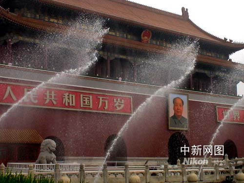 天安門城樓前的噴水婀娜多姿。作者:賈國榮