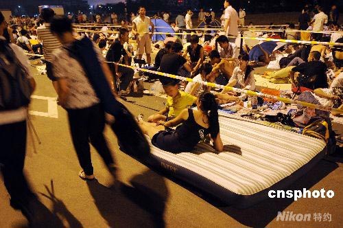 7月25日凌晨,北京兩萬余市民晝夜排隊(duì)期盼買到自己喜愛的奧運(yùn)項(xiàng)目賽事門票,F(xiàn)場(chǎng)有公安、城管、醫(yī)療救護(hù)、志愿者等工作人員24小時(shí)維持秩序,陪護(hù)市民有序購票。 中新社發(fā) 陳文 攝