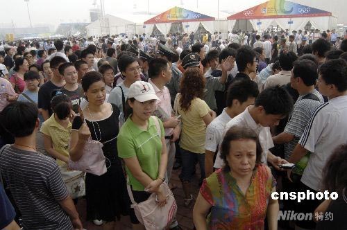 圖:數(shù)千球迷排隊搶購?qiáng)W運籃球門票(2)