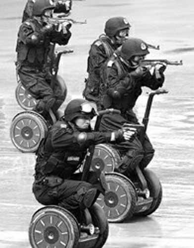 我的官方中文名稱(chēng)叫“思維智能移動(dòng)代步設(shè)備”。我很綠色,采用新能源鋰電池作為動(dòng)力,無(wú)任何尾氣排放。比自行車(chē)占地面積小,帶著我,可以自如地進(jìn)出電梯。而踏上我,工作人員就有了離地20厘米的額外高度,明顯高出人群一頭。既有利于觀察周?chē)闆r,也有利于群眾報(bào)警。