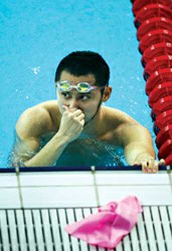 初入“水立方”的北島,神情怡然。下午6時30分,他先在游泳館西側(cè)的25米訓(xùn)練池邊接受按摩師的按摩。一刻鐘后,北島起身,走向50米比賽池,看臺上攝影記者的相機響成一片。