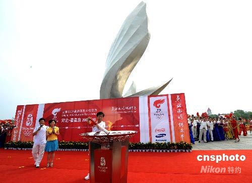 7月30日,奧運(yùn)火炬在河北秦皇島傳遞,在傳遞終點(diǎn)奧林匹克公園,末棒火炬手中共秦皇島市委書記王三堂點(diǎn)燃圣火盆,奧運(yùn)火炬在秦皇島站的傳遞結(jié)束。 中新社發(fā) 廖攀 攝