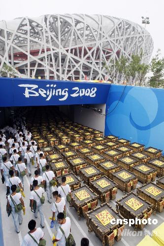 7月30日,第29屆夏季奧運(yùn)會(huì)開(kāi)幕式在北京國(guó)家體育場(chǎng)“鳥(niǎo)巢”進(jìn)行封閉式彩排,參演人員和道具陸續(xù)入場(chǎng)。 中新社發(fā) 杜洋 攝