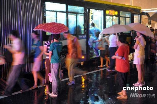 7月30日晚,北京奧運開幕式帶妝彩排演練,一場大雨給觀看彩排后的觀眾乘車帶來不便。中新社發(fā) 陳文 攝