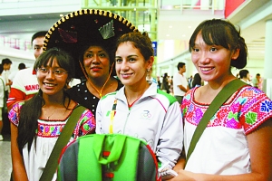 在北京首都機場接機大廳,戴著墨西哥傳統(tǒng)草帽頗顯怪異。昨日,3名墨西哥人就一直戴著能表明其身份的特殊帽子,等候本國運動員的到來。前來接機的攝影記者紛紛拿起相機,對著他們猛拍。在這一小撮人群中,還有一對雙胞胎女孩,她們是中墨混血兒,不過不會一句漢語。妹妹拿著一面墨西哥國旗,她們的父親是中國人,他告訴記者,“這幾個人從墨西哥來北京看奧運,今天自發(fā)前來接機。”