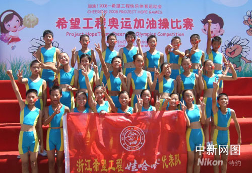 中新網(wǎng)杭州7月31日電(見(jiàn)習(xí)記者 張潔)近日,在 “加油!2008——全國(guó)希望工程快樂(lè)體育運(yùn)動(dòng)會(huì)”上,浙江省娃哈哈希望小學(xué)代表隊(duì)一舉拿下了全國(guó)奧運(yùn)加油操特等獎(jiǎng),以一種特殊的方式為北京奧運(yùn)會(huì)加油,這讓貧困山區(qū)的孩子享受體育的快樂(lè),感受奧運(yùn)的濃厚氛圍。