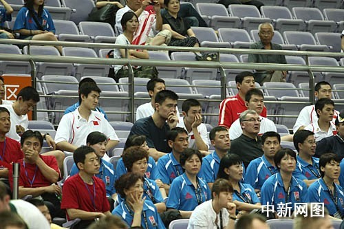 下午四時,中國男籃將士一行準時出現在看臺上,部分球員還不時打著哈欠?磥碓谇耙惶斓谋荣愔幸晕迨灞攘咻斀o澳大利亞隊后,有些球員睡得并不好。那場比賽結束后,媒體把矛頭主要指向了得到零分的易建聯,以及內線和外線的配合上。