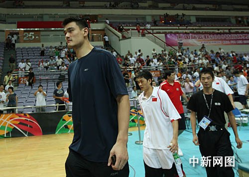 姚明坐在球員區(qū)的第一排,表情輕松,看來他心情還不錯。他的右邊是中國男籃的外籍助教,主教練尤納斯緊挨著他的左邊坐下,而姚明的國家隊好友劉煒則坐在他后面,方便交流。易建聯和王治郅坐在另外一邊,開始看比賽的易建聯臉色有些陰郁,顯然昨天的比賽中得分吞零蛋至今還讓他耿耿于懷,不過王治郅卻顯得心情開朗,笑容滿面,雖然他在對澳大利亞隊的那場比賽中也不過得到四分。
