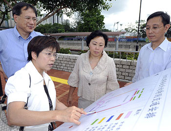 運輸及房屋局局長鄭汝樺(中)到沙田源禾路,視察奧運馬術(shù)比賽的交通運輸安排。(圖片來源:香港特區(qū)政府網(wǎng)站)