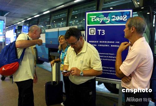 8月1日,參加北京奧運(yùn)會(huì)的法國男子手球隊(duì)抵達(dá)北京首都機(jī)場(chǎng)。中新社發(fā) 劉新 攝