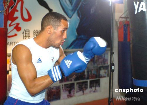 英國拳擊隊共有八名隊員參加北京奧運會,與古巴、俄羅斯等拳擊強國一比高下。圖為八月三日英國中量級選手詹姆斯·達格利在澳門備戰(zhàn)。 中新社發(fā) 畢永光 攝