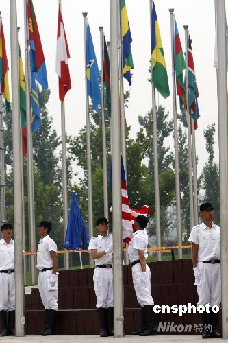 8月4日,馬來(lái)西亞奧運(yùn)代表團(tuán)在北京奧運(yùn)村舉行升旗儀式。
