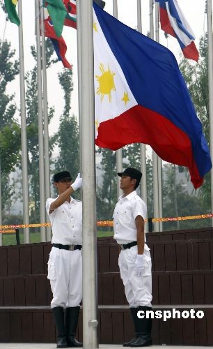 8月4日,菲律賓奧運代表團在北京奧運村舉行升旗儀式。