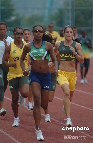 八月四日,巴西奧運(yùn)代表隊(duì)女子田徑選手在澳門進(jìn)行接力賽訓(xùn)練。 中新社發(fā) 畢永光 攝
